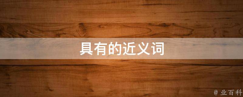 具有的近义词有:具备、拥有、享有等。具有的意思是拥有、具备、具有某种特征或能力。具有是一个动词,表示某种事物具备某种特定的性质、特征、能力等。它通常指的是某种事物固有的、本质的特点或者能力,有时也含有某种评价性的意味。