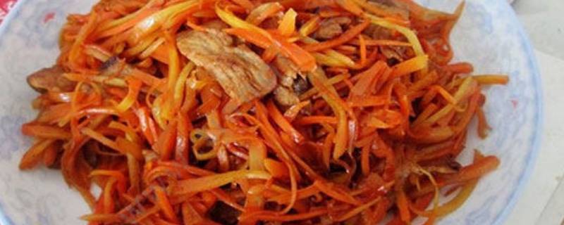 加入胡萝卜丝继续翻炒,再加入黄瓜、盐调味,炒断生后加入肉搅拌均匀即可出锅。