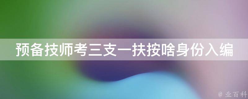 预备技师考三支一扶不能按身份入编,因为三支一扶是没有编制的。预备技师其学历属于中等职业教育,相当于高中毕业后的职业教育阶段。预备技师教育是为了满足社会对高素质、高技能人才的需求,培养适应现代化生产和社会发展需要的中等技术人才。