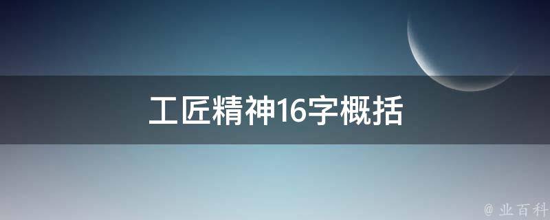 工匠精神16字概括是执着专注、精益求精、一丝不苟、追求卓越。工匠精神也是是一种职业精神,它是职业道德、职业能力、职业品质的体现,是从业者的一种职业价值取向和行为表现。工匠精神的基本内涵包括敬业、精益、专注、创新等方面的内容。