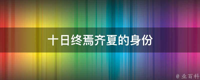 十日终焉齐夏的身份是一行人中的智囊,他的智商和胆量在团队中屈指可数,因此大家都愿意跟着他一起行动。《十日终焉》是一本悬疑解密类型的死亡游戏求生文,主角齐夏意外被拉入了一个十日为期的死亡世界,只有集齐指定的道具才能逃离这里。