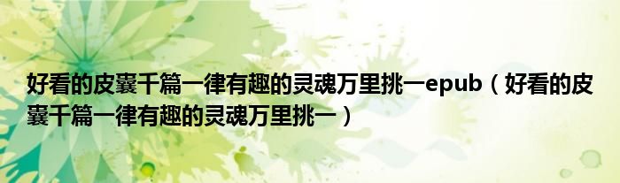 关于好看的皮囊千篇一律有趣的灵魂万里挑一epub,好看的皮囊千篇一律有趣的灵魂万里挑一这个很多人还不知道,今天菲菲来为大家解答以上的问题,现在让我们一起来看看吧!
