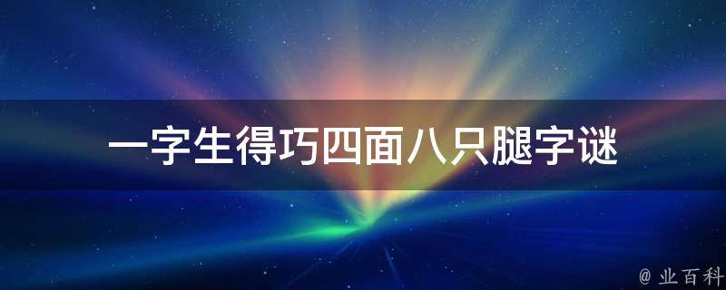 一字生得巧四面八只腿字谜是井或米。米字从字形上看,下面两个面有3只腿,中间分割上下两个面的一横左右各一只腿,加起来就是八只腿。至于井字,每个面出口都有两只腿,合起来4个面,总共有八只腿。这两个答案从字形的方面解答都是正确的。