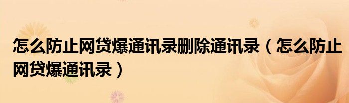 关于怎么防止网贷爆通讯录删除通讯录,怎么防止网贷爆通讯录这个很多人还不知道,今天菲菲来为大家解答以上的问题,现在让我们一起来看看吧!