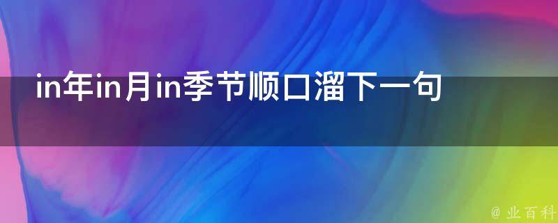 in年in月in季节顺口溜下一句:in早in晚in世纪,on上on下on具体,外加日期和星期,at点at刻at年龄,反反复复记心里。in、on、at表示时间的时候,可以以顺口溜的方式记忆。