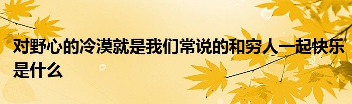 大家好,小联来为大家解答以上的问题。对野心的冷漠就是我们常说的和穷人一起快乐是什么这个很多人还不知道,现在让我们一起来看看吧!