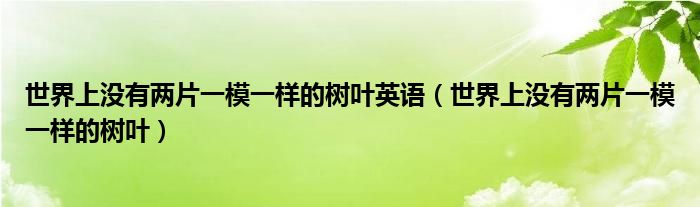 大家好,小联来为大家解答以上的问题。世界上没有两片一模一样的树叶英语,世界上没有两片一模一样的树叶这个很多人还不知道,现在让我们一起来看看吧!