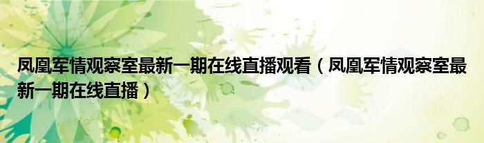大家好,小联来为大家解答以上的问题。凤凰军情观察室最新一期在线直播观看,凤凰军情观察室最新一期在线直播这个很多人还不知道,现在让我们一起来看看吧!