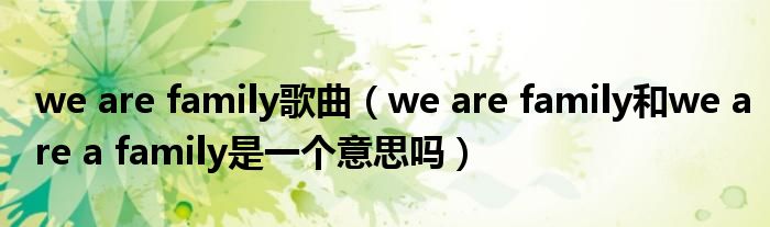 关于we are family歌曲,we are family和we are a family是一个意思吗这个很多人还不知道,今天菲菲来为大家解答以上的问题,现在让我们一起来看看吧!