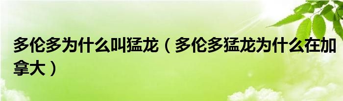 关于多伦多为什么叫猛龙,多伦多猛龙为什么在加拿大这个很多人还不知道,今天菲菲来为大家解答以上的问题,现在让我们一起来看看吧!