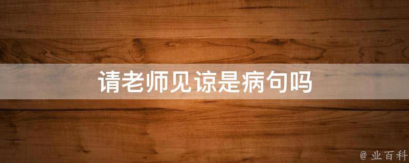 请老师见谅不是病句。请老师见谅的用法是正确的,多用于书信等较为正式的场合。见谅一词的意思是请对方原谅自己,它是一种表达谦逊和礼貌的方式,常用于正式场合或书面语中。例如:如有不当之处,请见谅。表示如果有任何不当之处,请对方原谅自己的不足之处。因此,请老师见谅是一个合适的表达方式。