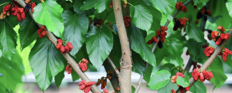 桑葚树可以扦插繁殖。扦插是桑葚树常用的繁殖方法,要选一年生以上的健壮枝作为插枝,每段上面保留1到3个芽点,枝条长度控制在8到12厘米就行。处理好之后先放在生根水里浸泡一会,然后直接插入基质中即可。插后浇透水,提供温暖、通风好的环境,这样很快就会生根成活。