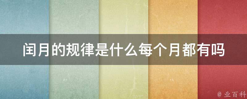 最佳答案闰月的规律是阴阳历逢闰年所加的1个月,农历属阴阳历,规定不含中气的月份为闰月,并用上月的月份名称或序数称闰某月;十二个月中并不是每个月都有闰月。古代天文学家在编制农历时,为使一个月中任何一天都含有月相的意义,即初一是无月的夜晚,十五左右都是圆月,就以朔望月为主,同时兼顾季节时令...