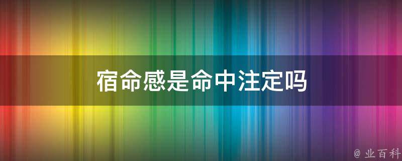 宿命感是命中注定。命中注定是指迷信的人认为人的一切遭遇都是命运预先决定的,人力无法挽回。宿命感是指摆脱不了命运注定轨迹走向所产生的感觉,或感觉到事情一定会产生的结局,是自己不能控制的。宿命感让人感觉是命运的安排。