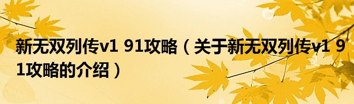 新无双列传v1 91攻略(关于新无双列传v1 91攻略的介绍)