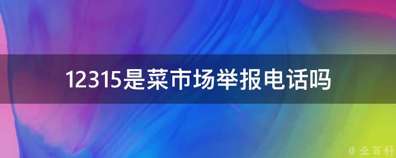 12315是菜市场举报电话。12315是国家市场监督管理总局设立的消费者投诉举报电话,旨在保护消费者权益、维护市场秩序。消费者可以通过拨打12315电话,向相关部门反映自己在购买商品或接受服务过程中遇到的问题或投诉。