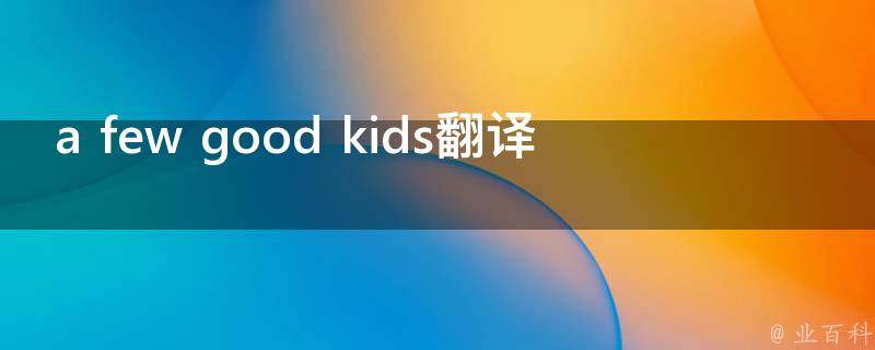 a few good kids翻译为几个好孩子。英语属于印欧语系日耳曼语族西日耳曼语支,最早被中世纪的英国使用,并因其广阔的殖民地而成为世界使用面积最广的语言。英国人的祖先盎格鲁部落是后来迁移到大不列颠岛地区的日耳曼部落之一,称为英格兰。