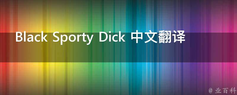 Black Sporty Dick中文翻译为黑色的运动迪克、黑色运动老二。翻是指的这两种语言的转换,即先把一句甲语转换为一句乙语,然后再把一句乙语转换为甲语;译是指这两种语言转换的过程,把甲语转换成乙语,在译成当地语言文字的过程中,进而明白乙语的含义。