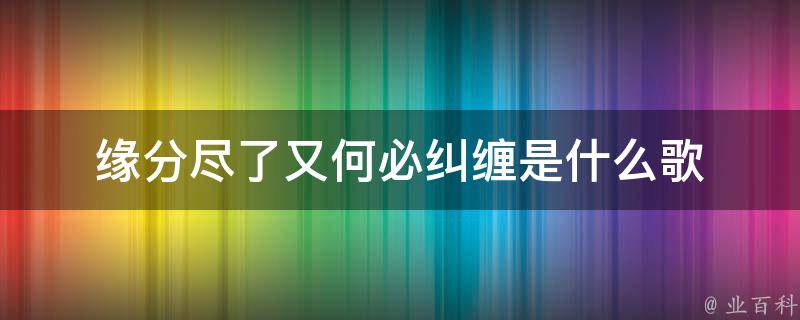 缘分尽了又何必纠缠是歌曲《不爱就散 一别两宽》里的歌词。《不爱就散 一别两宽》是宋亚永作词、陈浩作曲、徐婧演唱、关剑编曲的歌曲。发行日期是2021年9月14日。演唱者徐婧是我国内地著名女歌手,在音乐方面非常有天赋。
