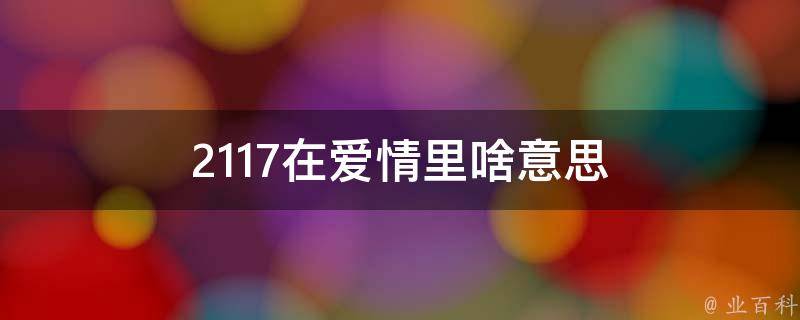 2117在爱情里的意思是爱要一起。数字2代表爱,1代表要、一,7代表起,连在一起就是表达爱情的数字密语:爱要一起。类似的还有:1314920谐音一生一世就爱你;1372谐音一厢情愿;1392010谐音一生就爱你一个。