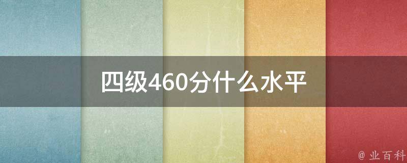 四级460分属于一般水平。英语四级425分是及格线,中等水平在475分左右,525分左右算是高级水平,超过525达到575分算是优秀的水平。大学英语四、六级考试的分数报道采用常模参照方式,每次考试等值后的卷面分数都参照常模转换为报道分,四、六级考试报道总分为710分。