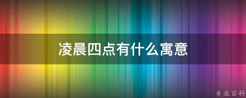 凌晨四点是在说科比训练十分刻苦,凌晨四点钟就在训练。后来被很多人用来形容刻苦学习、辛勤训练等。后来凌晨4点,更是引申为一种努力、一种精神的象征,代表为了完成或实现某个目标而坚持不懈地付出行动的努力。