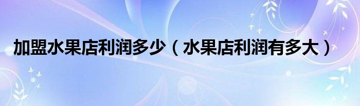 关于加盟水果店利润多少,水果店利润有多大这个很多人还不知道,今天菲菲来为大家解答以上的问题,现在让我们一起来看看吧!