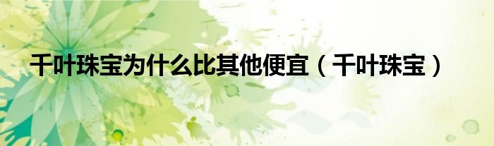 大家好,小联来为大家解答以上的问题。千叶珠宝为什么比其他便宜,千叶珠宝这个很多人还不知道,现在让我们一起来看看吧!