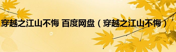 大家好,小联来为大家解答以上的问题。穿越之江山不悔 百度网盘,穿越之江山不悔这个很多人还不知道,现在让我们一起来看看吧!