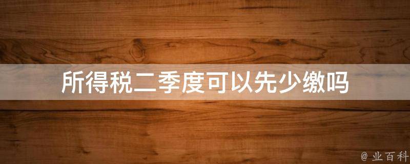 所得税二季度不可以先少缴。据《中华人民共和国企业所得税法》规定,企业应当自月份或者季度终了之日起十五日内,向税务机关报送预缴企业所得税纳税申报表,预缴税款。企业应根据自身的盈利情况,按照税法规定及时、足额地缴纳税款,以避免违反税收法规和法律的风险。