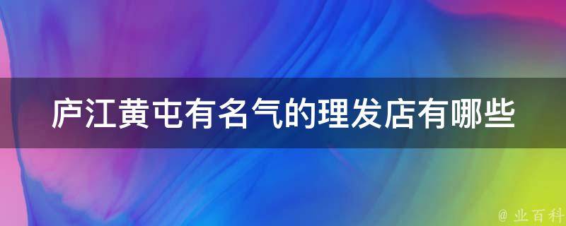 庐江黄屯有名气的理发店有动感名剪坊、阿江美发、创意美发、艺阁理发店等。庐江黄屯始建于唐朝的庐江黄屯老街,至今已有1千多年历史,2023年3月,入选第六批中国传统村落名录的村落名单。