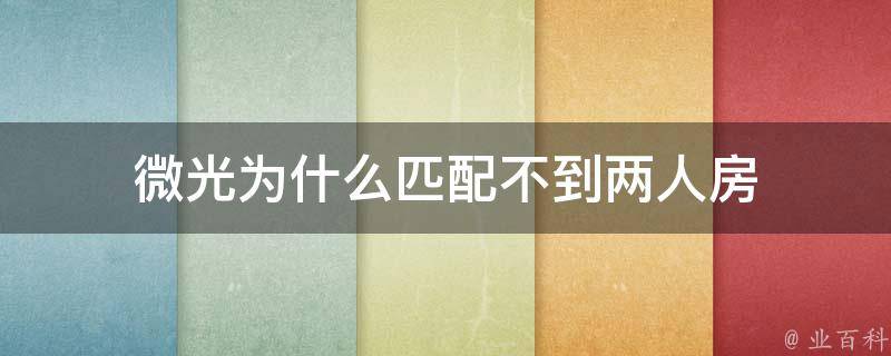 微光为什么匹配不到两人房
