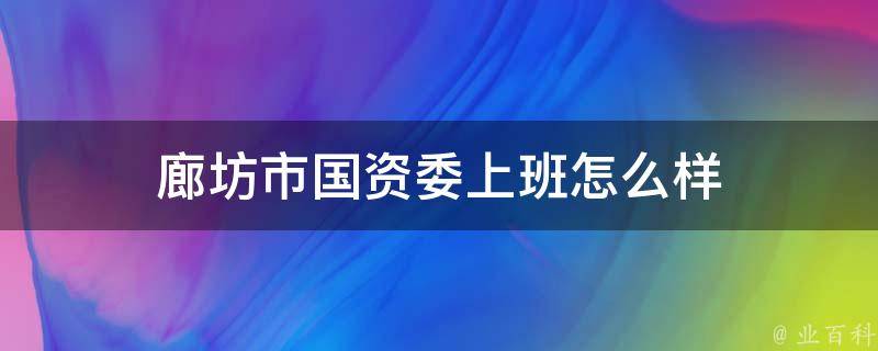在廊坊市国资委上班是非常好的,工作比较稳定。作为国资委的工作人员,有机会参与和了解国有企业的运营管理、战略规划等方面的工作,能为自己提供广阔的发展空间和机会,有助于自己在相关领域积累经验,并提升个人职业能力。