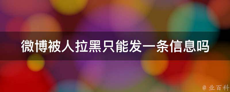 微博被人拉黑不能发消息。微博中加一个人进入黑名单后,自己和对方将自动解除关注关系,并且对方不能再关注自己,不能再给自己发评论和私信。此外,非互关在没被回复的情况下,只能发送一条私信。