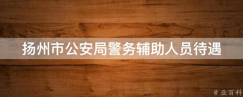 扬州市公安局警务辅助人员待遇为:试用期工资标准为2020元/月,试用合格者,聘用期间考核合格平均月工资不少于4000元/月。此外,还享受扬州市公安局经济技术开发区分局警务辅助人员相应的福利待遇。