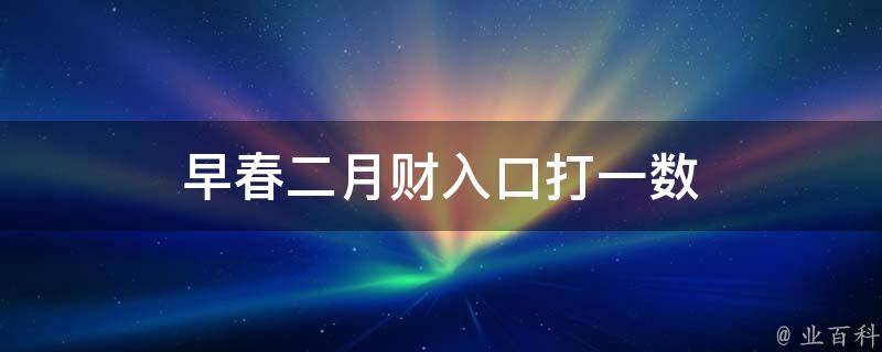 早春二月财入口打一数是2。因为早春二月中有2这个数字,所以,早春二月财入口打一数是2。在数字谐音中,0代表圆满、完美、无尽;1代表唯一、你、起点;2代表爱、两人世界;3代表想念、生命、生活。