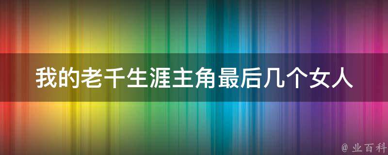 最佳答案我的老千生涯主角最后有1个女人,《我的老千生涯》是2008年鹭江出版社出版的书籍,作者是腾飞,主要讲述了作者通过对亲历一个个赌场骗局的叙述,以道出局中内幕劝诫读者。小说刻画人物的方法:心理描写、动作描写、语言描写、外貌描写、神态描写、侧面描写。同时,小说是一种写作方法。