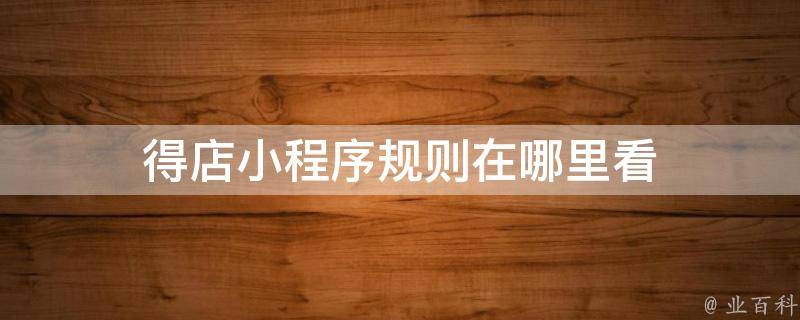 得店小程序规则在哪里看