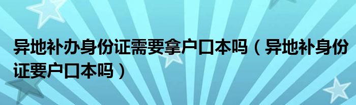异地补办身份证需要拿户口本吗(异地补身份证要户口本吗)