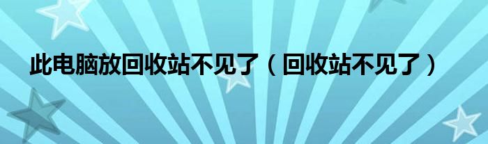今天小饼为大家解答以下问题,关于此电脑放回收站不见了,回收站不见了很多人还不知道,现在让我们一起来看看吧!