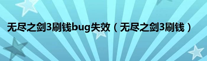 大家好,我是小科,我来为大家解答以上问题。无尽之剑3刷钱bug失效,无尽之剑3刷钱很多人还不知道,现在让我们一起来看看吧!