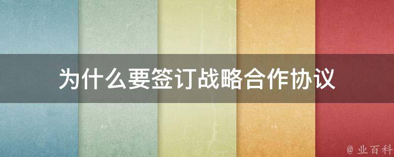 为什么要签订战略合作协议