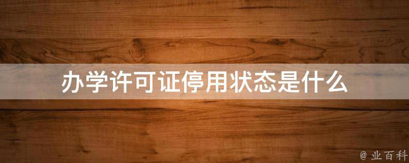 办学许可证停用状态是教育机构的办学许可证被停止使用或暂时冻结。教育机构涉嫌违反相关的法律法规、学术规范或监管要求,造成严重后果,导致办学许可证被停用。如果教育机构出现这种情况,可以向当地教育部门咨询具体的政策和程序。