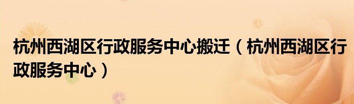杭州西湖区行政服务中心搬迁(杭州西湖区行政服务中心)