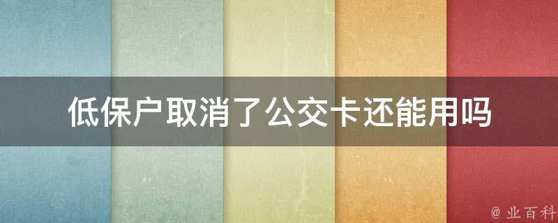 低保户取消了公交卡不能用。因为低保户的公交卡是针对低保户的优惠政策,如果低保户取消了,相应的优惠政策也会取消。低保户是指因家庭成员存在重度残疾或疾病丧失劳动力,享受最低生活保障补助的家庭。其住房或收入明显低于当地低保标准的居(村)民。
