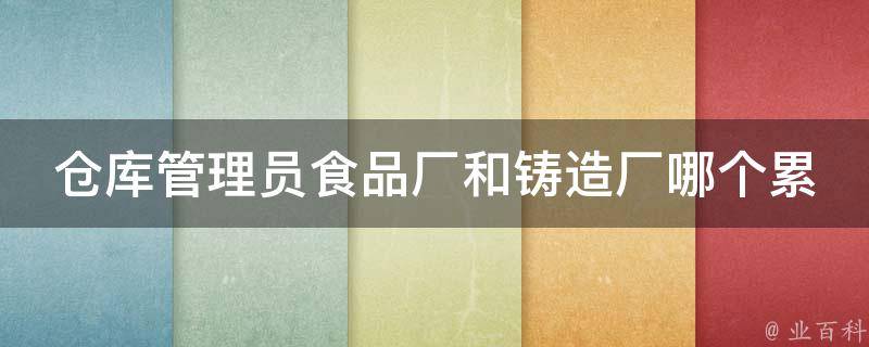 仓库管理员食品厂累,因为大部分食品厂不是很大,除了做仓管外还要兼职做搬运,一些大的食品厂有专门的搬运工,可能做仓管会轻松点。仓库管理包含多个方面,仓储管理、电脑操作、数据分析、物料计划等,仓库管理员精通的技能丰富,仓库管理员职业发展方向也有多向选择。