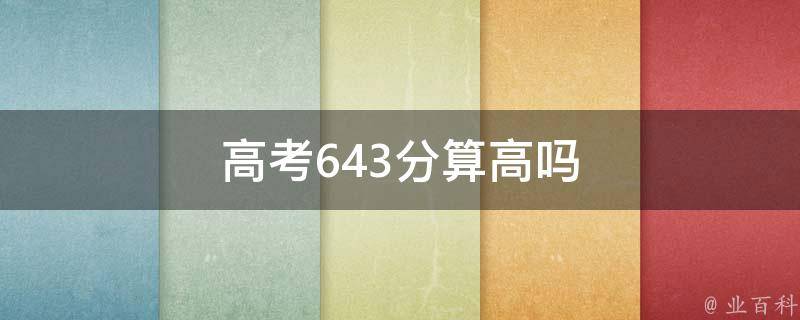 高考643分算高。根据中国的高考分数计算方式,高考总分750分,因此643分可以被认为是一个非常不做的分数。高考是合格的高中毕业生或具有同等学力的考生参加的选拔性考试。普通高等学校需要根据考生成绩,按照招生章程计划和扩招,德智体美劳全面衡量,择优录取。