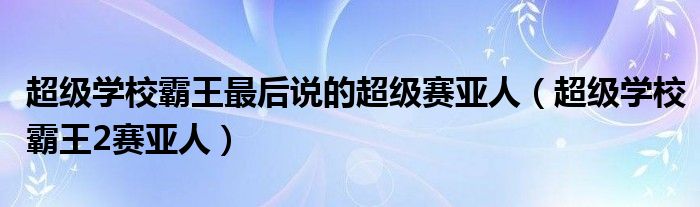 大家好,我是小科,我来为大家解答以上问题。超级学校霸王最后说的超级赛亚人,超级学校霸王2赛亚人很多人还不知道,现在让我们一起来看看吧!