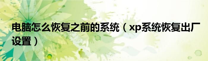 大家好,我是小科,我来为大家解答以上问题。电脑怎么恢复之前的系统,xp系统恢复出厂设置很多人还不知道,现在让我们一起来看看吧!