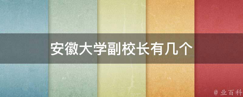 安徽大学副校长有1个,即钱家盛。钱家盛,毕业于合肥工业大学,现兼任中国化学会理事、安徽省化学会常务理事兼秘书长。1999-2003年在中国科学技术大学高分子化学与物理专业攻读博士学位。2019年8月任安徽大学副校长。